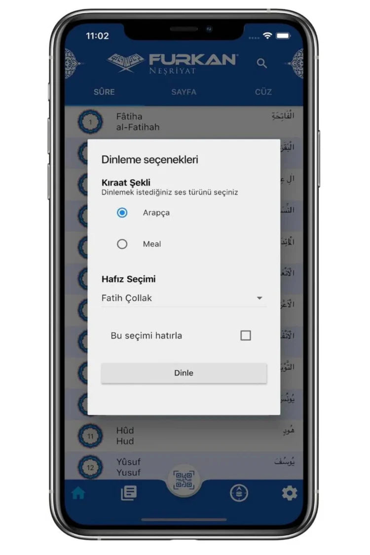 Telefon uygulamasını indirerek kitabınla kolayca eşleştir. 124 farklı imamdan dilediğin tilaveti seç, ayet ayet tekrar et ve okuma hızını kendine göre ayarla. Arapça metni takip ederken Türkçe meal veya farklı dilleri açıp kapatabilir, önemli ayetlere yer imi ekleyebilir ve notlarını uygulama üzerinden kaydedebilirsin.